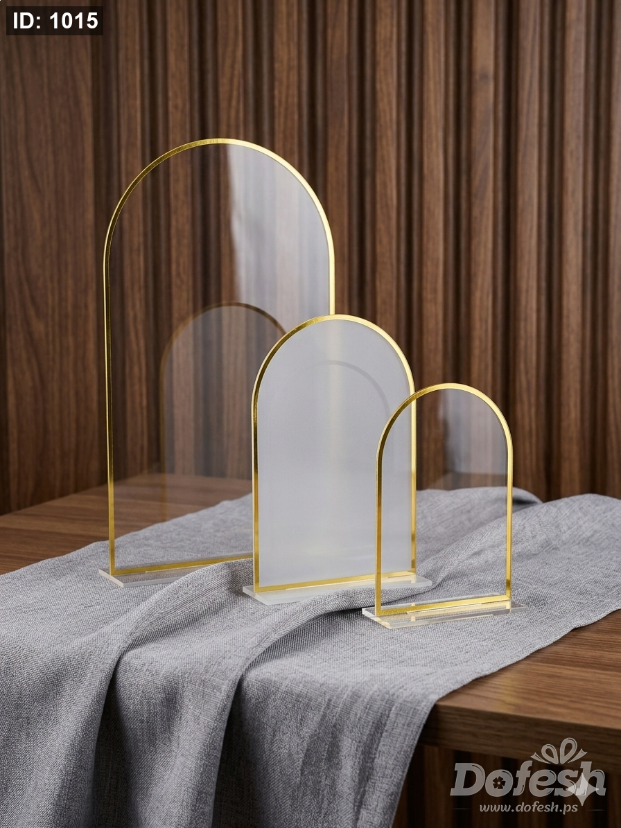 ستاند اكريلك بيضاوي مع حز ذهبي ٣ مقاسات