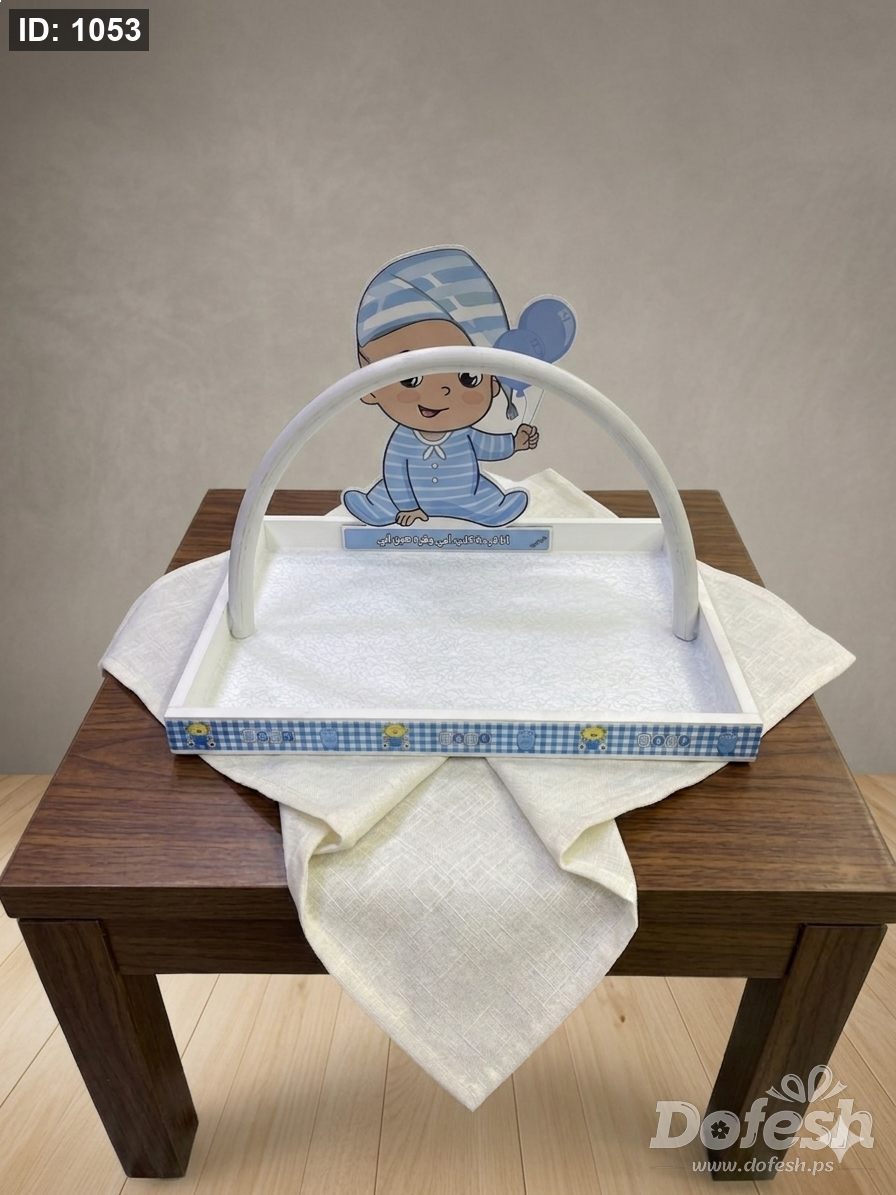 صينية خشب مزينة للبيبي لون ازرق مقاس 40*30cm
