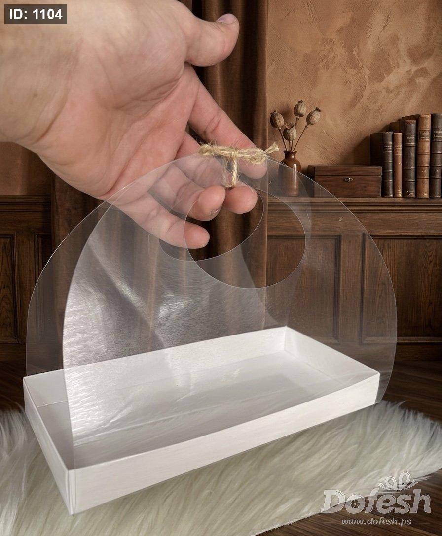 كيس شفاف مع قاعدة كرتون مميز مقاس (عمق 10cm ارتفاع 18cmعرض ققم)