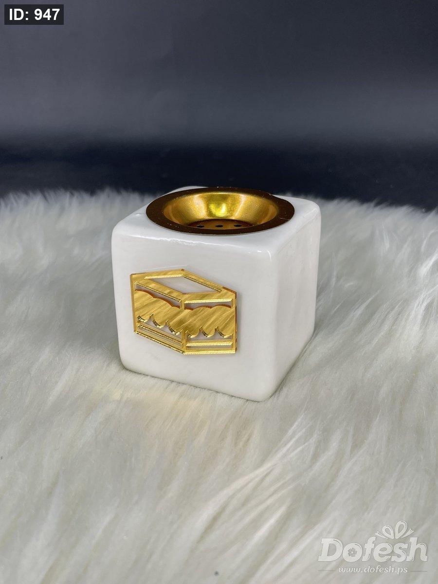 مبخرة سيراميك مع طبعة شكل الكعبة اكريلك مقاس 6*6