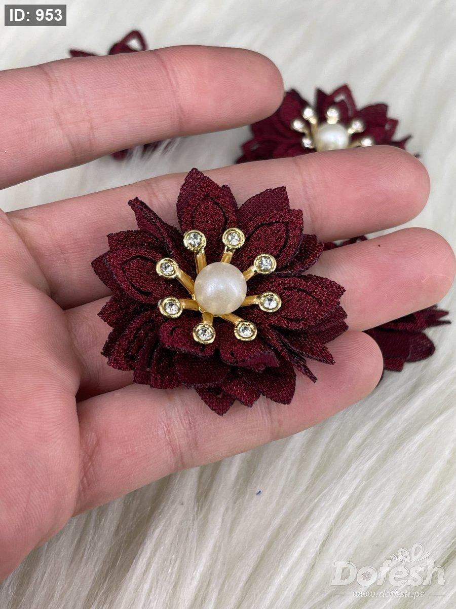 ورد مخمل مع خرزة مقاس ٤ سم